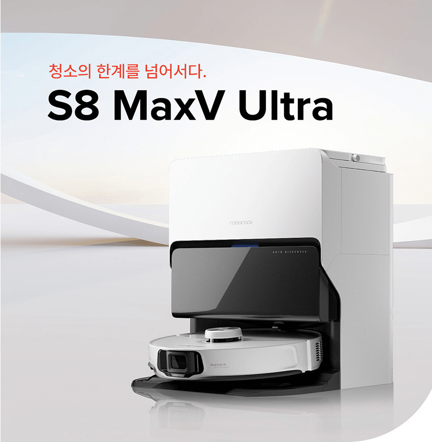 고급형 물걸레 로봇청소기 로보락입니다. 이번에 새로 나온 S8 MAX V ULTRA는 각종 AI시스템으로